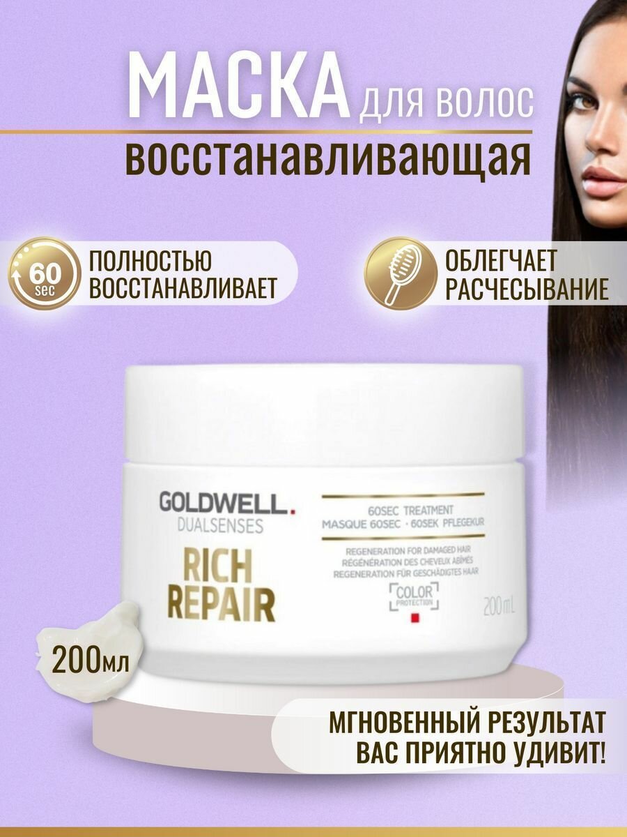 Восстанавливающий уход за 60 секунд для поврежденных волос Rich Repair 60sec Treatment (06139 200 мл) Goldwell