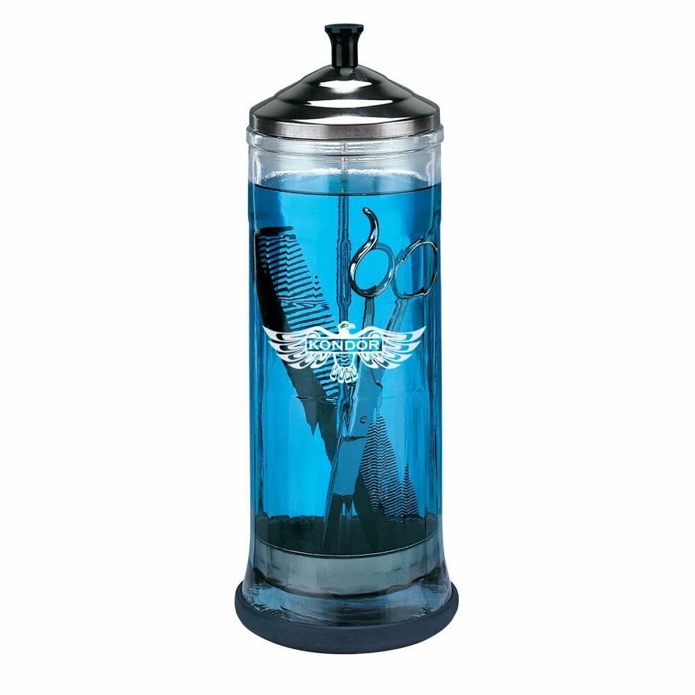 Kondor Колба для стерилизации инструментов 1000 мл идеален для использования в салонах и на дому. Стеклянная,полированная колба, со стальной крышкой и резиновым основанием; для стерилизации инструментов, расчесок, брашингов, ножниц.