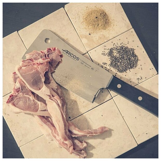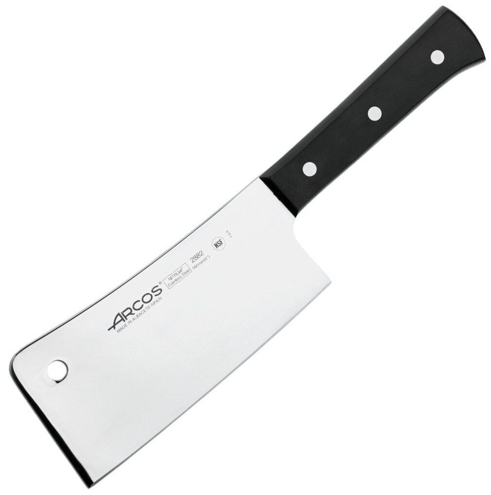 Линейка цельнокованых кухонных ножей Clasica от Arcos вошли острые режущие инструменты с лезвиями из кованой стали X45 CrMoV15 и рукоятьми из черной ацетальной смолы. Изделия имеют классический европейский экстерьер: проверенную традиционную геометрию клинков, рукоятки с больстером и развитой задней головкой, с крепежом накладок большими глухими заклепками.