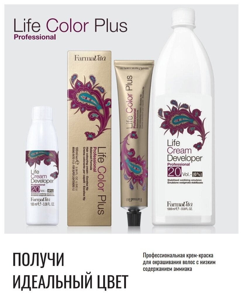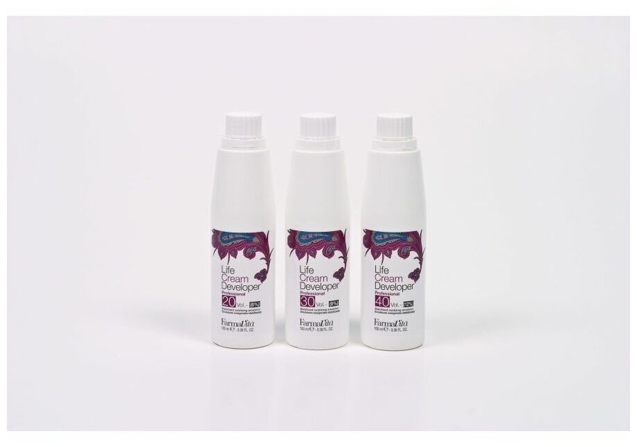 Композиция, которая легко применяется во всех случаях, когда необходима химическая реакция окисления (окрашивания и обесцвечивания). Формула была специально разработана для защиты волоса от агрессивного воздействия химических веществ (содержит антистатик и бальзам) Способ применения: при косметическом окрашивании разводится 1:1,5 (Life Color Plus), 1:1 (Farmacolor). Все суперосветляющие краски разводятся 1:2.
