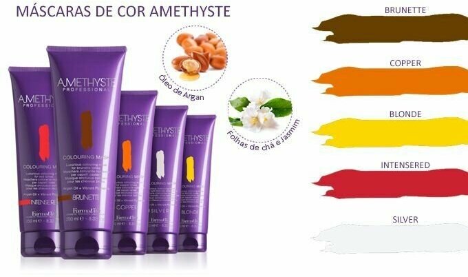 Brunette - добавит приятный натуральный шоколадный тон любому темному цвету. Благодаря эксклюзивной формуле, способны поддерживать или кардинально изменять косметический цвет в течение нескольких минут. Обеспечивают волосы дополнительным интенсивным питанием, благодаря наличию в составе Арганового масла. После применения волосы обретают чрезвычайную мягкость и шелковистость. Amethyste Colouring mask идеально подходит для: • оживления и сохранения косметического цвета между посещениями салона красоты • используя маску на натуральные волосы, Вы получаете более глубокий оттенок и ювелирный блеск ПРЕИМУЩЕСТВА: 1.ДЕЛИКАТНОЕ ОТНОШЕНИЕ К ВОЛОСАМ: продукт не содержит аммиака и не смешивается с оксидантом; 2.СОХРАНЕНИЕ И УСИЛЕНИЕ КОСМЕТИЧЕСКОГО ЦВЕТА; 3.ЖИВЫЕ И БЛЕСТЯЩИЕ ВОЛОСЫ: спасибо аргановому маслу (состав которого богат Витамином Е, Омега-кислотами и натуральными Токоферолами) за ни с чем несравнимое увлажнение, омоложение и укрепление волос; 4.ОЧАРОВАТЕЛЬНЫЙ АРОМАТ: придает волосам изысканность, благодаря тонкому сочетанию ноток Жасмина и Китайского чая; 5.УДОБСТВО И ПРОСТОТА ИСПОЛЬЗОВАНИЯ Активные ингредиенты: система Omnia Color: Масло из семян пенника лугового - драгоценное масло, богато природными антиоксидантами и уникальным составом жирных кислот. Помогает сохранить интенсивность цвета и блеск волос. Исследования показали, что масло проникает в волокна волос, восстанавливая структуру и повышая его прочность. Пантенол - глубоко проникает в структуру и позволяет сбалансировать естественный уровень влаги в волосах. УФ-фильтр - защищает волосы от выгорания на солнце, вымывания красителя и потускнения цвета. Олигоминеральный комплекс - комплекс олигоэлементов (кремний, магний, медь, железо, цинк), которые глубоко проникают в волокна волос и помогают восстановить поврежденные участки. Способ применения: нанесите на волосы после применения шампуня или обычной питательной маски. Время выдержки от 5 до 15 минут в зависимости от желаемой интенсивности цвета. Смыть. Приступить к укладке. Для достижения максимального эффекта рекомендуется применять вместе с шампунем Amethyste Color и лосьоном Amethyste Color Re-Vital.