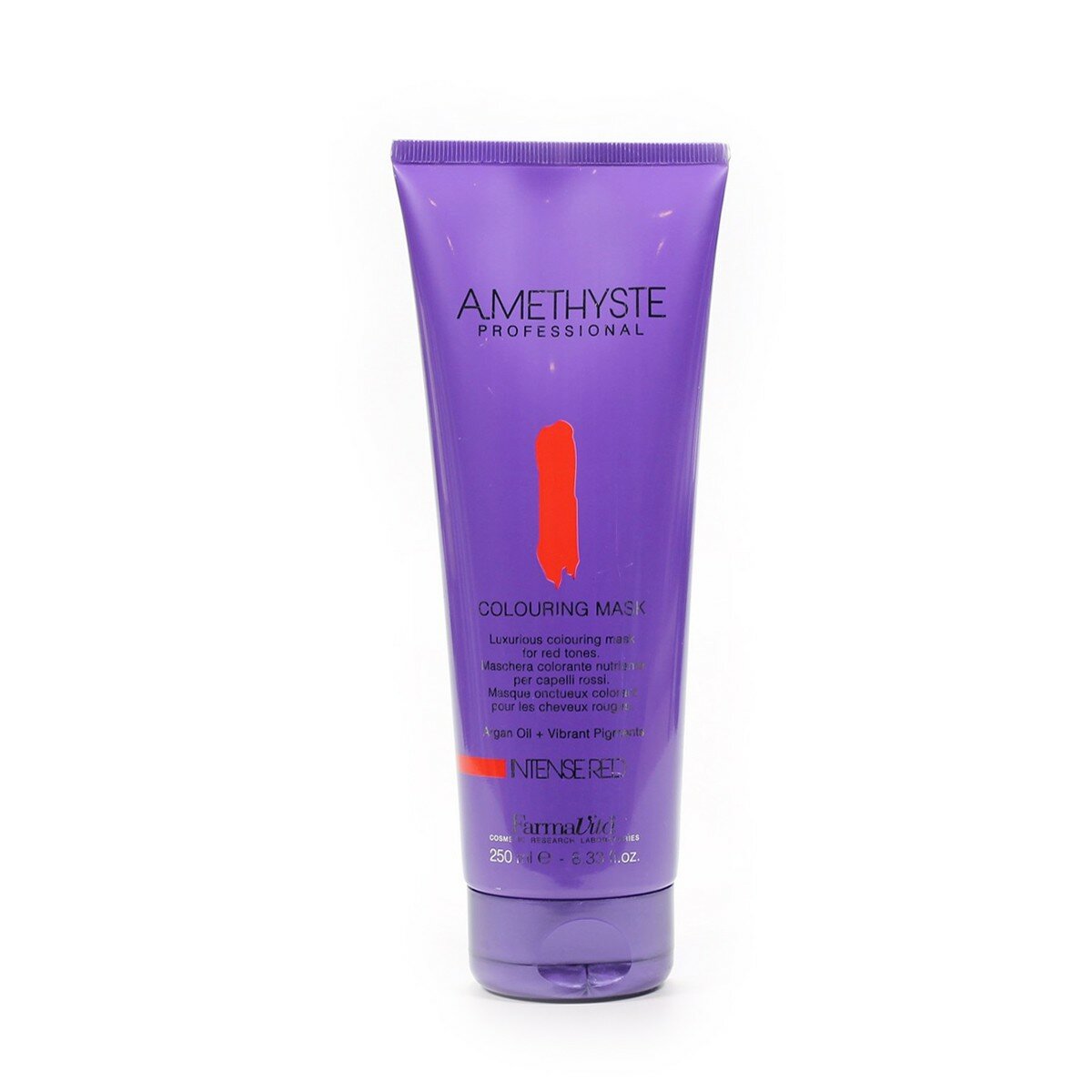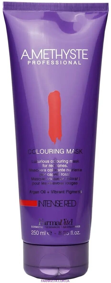 Маска оттеночная Farmavita Amethyste Colouring Mask red 250 мл - питательная красящая маска, обогащенная аргановым маслом для придания интенсивности выбраного цвета за 5 минут. Оставляет волосы необычайно сияющими и мягкими. Нежные и блестящие волосы, благодаря аргановому маслу с несравненным увлажняющим, укрепляющим и антиоксидантным эффектом. Заманчивый аромат: оставляет на волосах легкий аромат жасмина и листьев чайного дерева. Для красных оттенков. Усиливает и придает светлые и темные красные тона.
