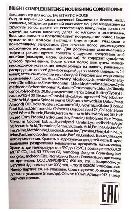 | Фирма-производитель | ESTHETIC HOUSE Co, Ltd. |