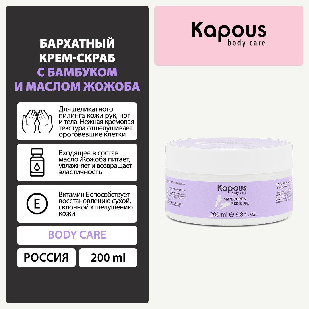 Бархатный крем-скраб с бамбуком и маслом жожоба (200 мл) Kapous (2263)