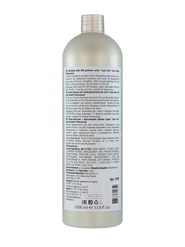 Шелк-Бальзам с протеинами шелка Luxe Care (1000 мл) Kapous (2598)