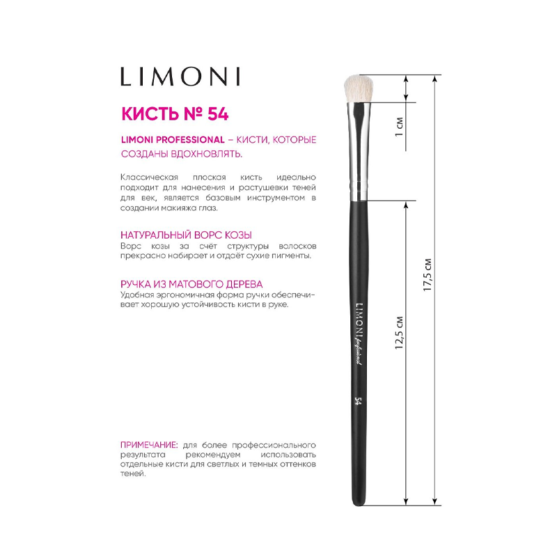 На сегодняшний день товар «Кисть для нанесения теней №54 коза Limoni (23407)» можно купить с кешбеком в 1 магазине: Яндекс.Маркет