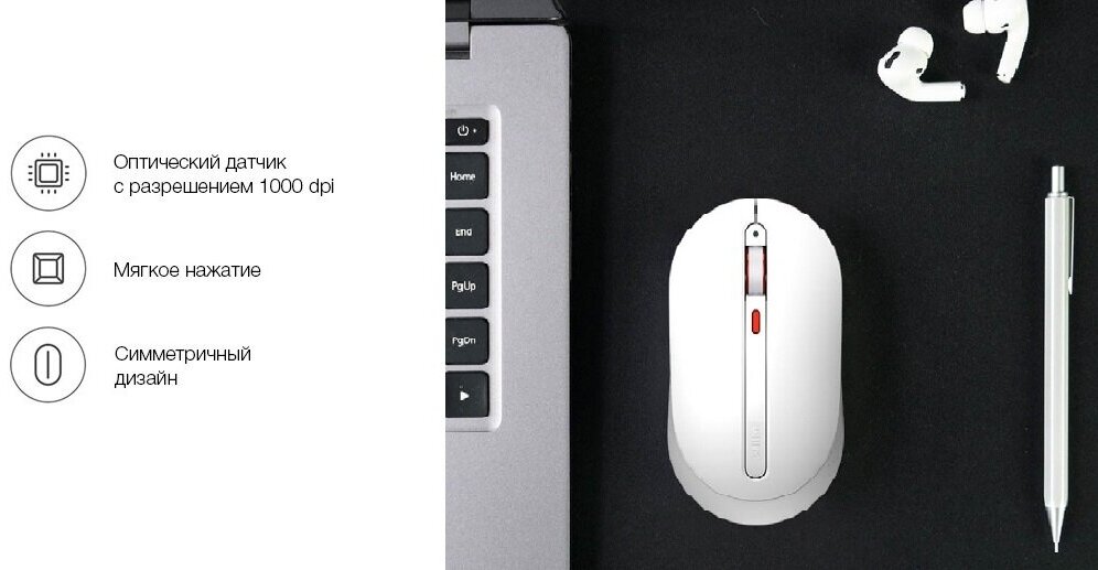 Беспроводная офисная мышь Xiaomi MIIIW Wireless Office Mouse обладает в простым и элегантным внешним видом. Выполненная в минималистичном деловом стиле, прекрасно впишется в интерьер вашего рабочего места. Корпус выполнен из пластика ABS, с приятной текстурой, износостойкими и антикоррозийными свойствами. Изящные обтекаемые грани добавят элегантности деловой атмосфере.