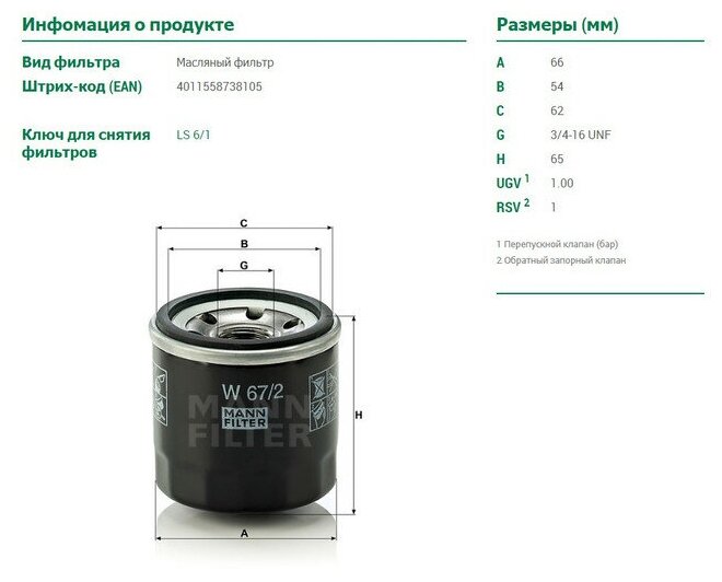 Сервис сравнения цен СкидкаГИД предлагает сравнить цены на товар «Фильтр маслянный двигателя MANN-FILTER W 67/2»