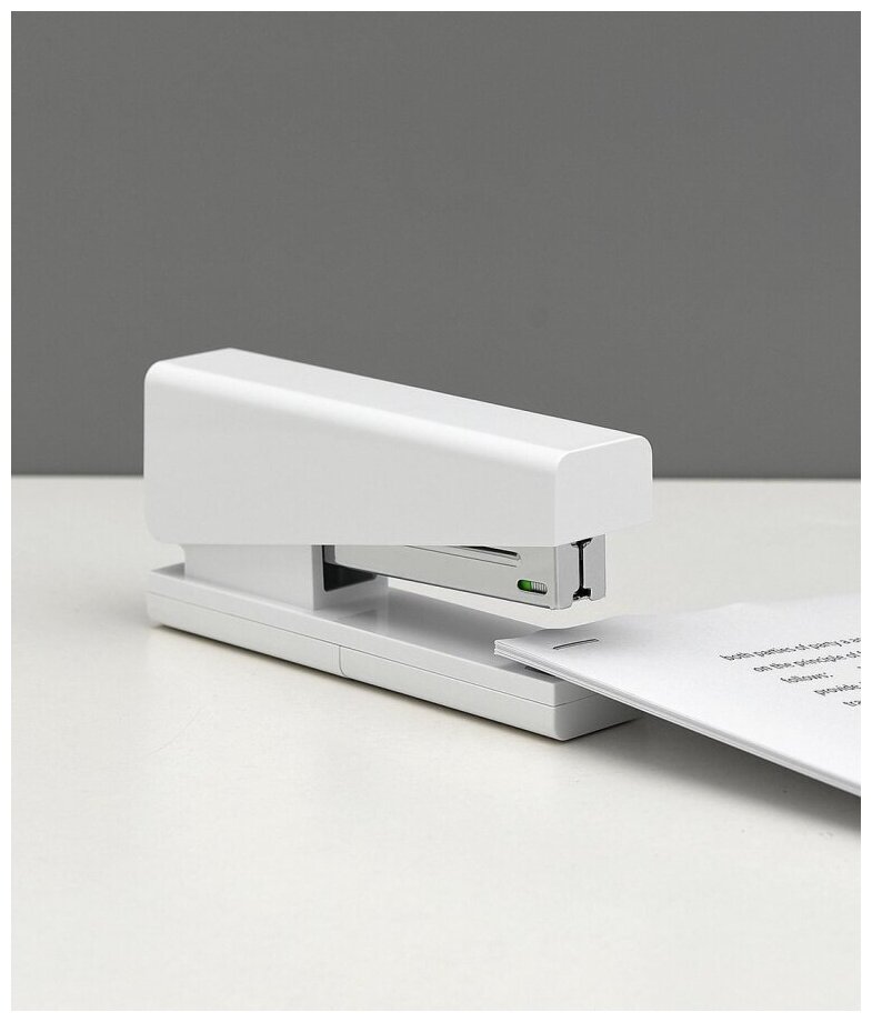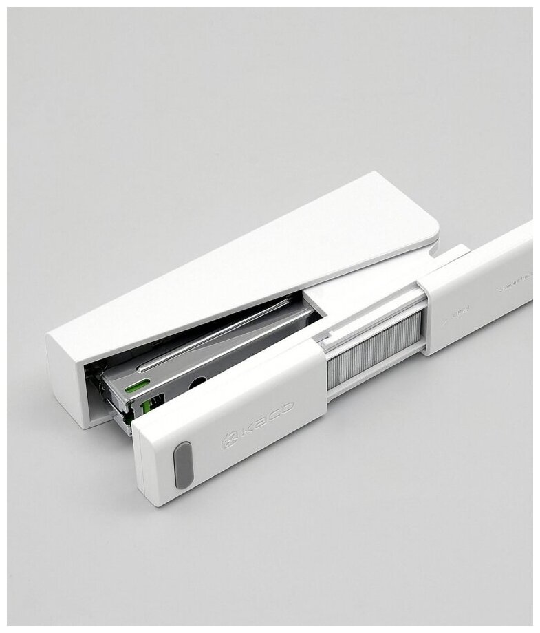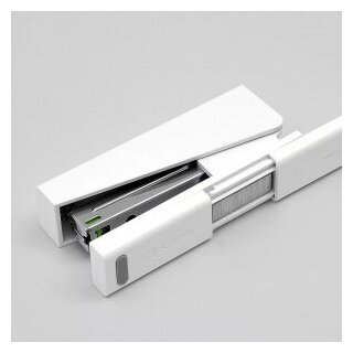 Внешние элементы степлера выполнены из прочного АБС-пластика белого цвета с приятной на ощупь поверхностью. При этом все внутренние механизмы выполнены из анодированной стали, отличающейся длительным сроком службы и высокой прочностью. Сочетание красоты и практичности делает степлер прекрасным дополнением рабочего стола. В основании степлера Lemo предусмотрен отдельный отсек для экстренных случаев, например, когда Вам нужно взять степлер с собой, а коробочку со скобами забрал “на время” кто-то из коллег. Если основной лоток опустел, можно достать скобы из запасного и быстро перезарядить степлер. Поставляемых в комплекте стандартных скоб 24/6 хватит для того, чтобы долго о них не вспоминать.