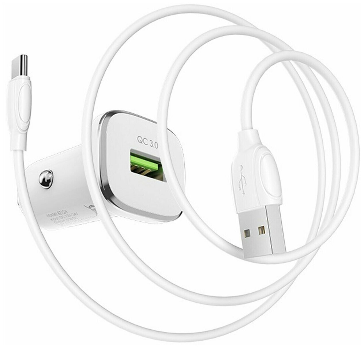 Borofone АЗУ 1USB 3.0A QC3.0 Быстрая зарядка для Type-C Белый BZ12Aa