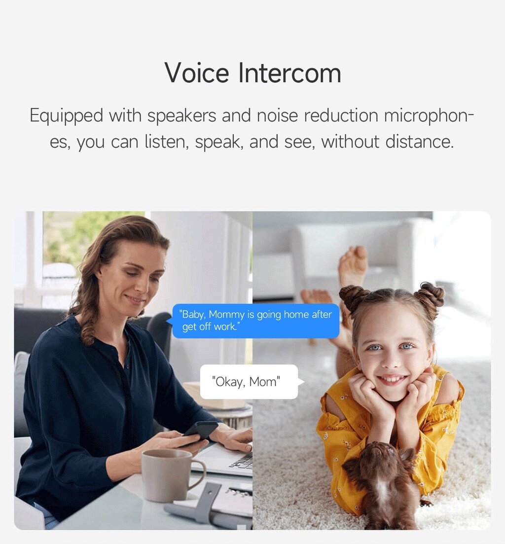 Встроенный микрофон и динамик позволяют в реальном времени общаться с человеком. Камера имеет слот для карты памяти microSD, также сохранение видео возможно в облако.