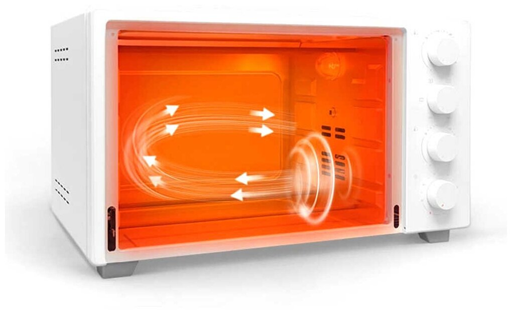 Большая конвекционная печь Xiaomi Electric Oven 32L – это отличная возможность попробовать свои силы в кулинарном искусстве. Объем печи составляет 32 л. Этого хватит, чтобы накормить семью из 6 человек. Печь поддерживает технологию раздельного контроля температуры, что позволяет выбрать степень прожарки и задать цвет корочки. Для приготовления крупных продуктов предусмотрен вращающийся вертел. Он используется в сочетании с функцией циркуляции воздуха и позволяет получить равномерную прожарку мяса, сохранив ее сочность.