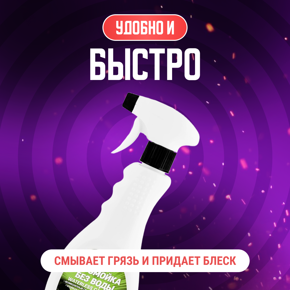Теперь не нужно воды, ведер и шлангов. Просто распылите и протрите, и Ваш автомобиль станет чистым за считанные минуты.