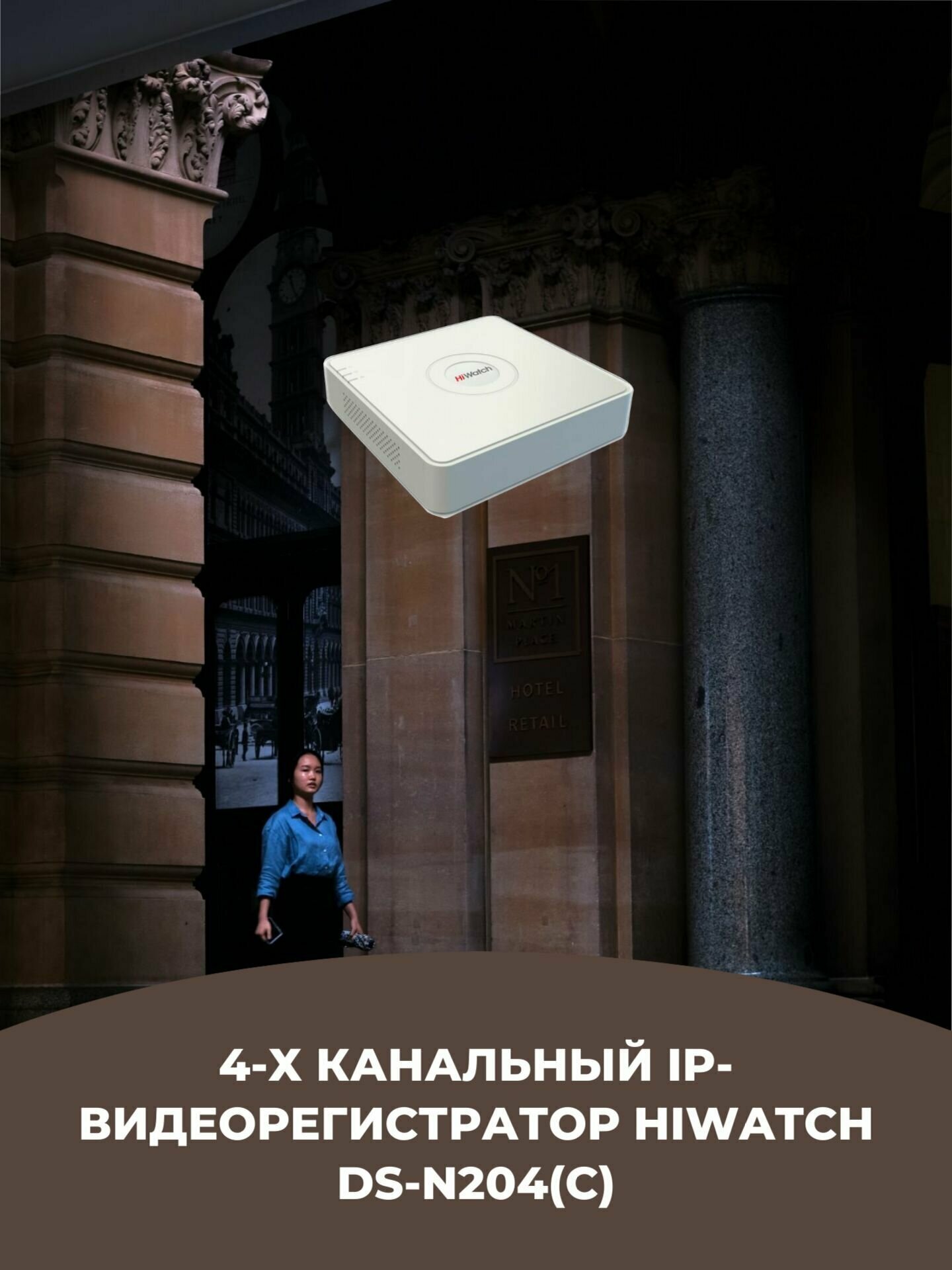 HiWatch DS-N204(C) – 4-х канальный IP-регистратор. Запись и вывод видео с с разрешением до 4 Мп. 1 SATA HDD до 6ТБ. Сетевой интерфейс 1 RJ-45 10M/ 100M Ethernet. Технология эффективного сжатия H.265+/H.265/ H.264+/H.264. Диапазон рабочих температур от -10 до +55 °C.