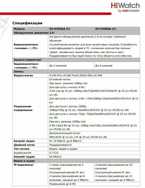 | Формат сжатия | H.264 / H.264+ / H.265 / H.265 Pro / H.265 Pro+ / H.265+ |