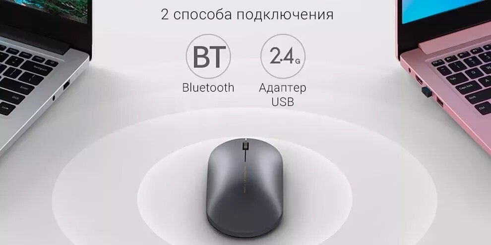 Устройство поддерживает 2 вида подключения, через специальный передатчик и по беспроводному Bluetooth-соединению. Это позволит вам подключать мышь Xiaomi к двум устройствам одновременно.