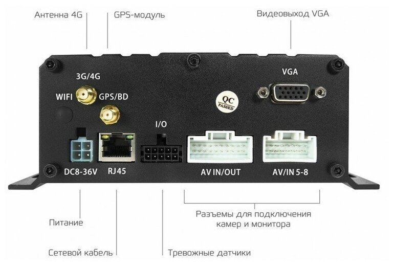 | Функции | Задержка отключения до 24 часов / Воспроизведение:1 или 8 каналов с возможностью выбора времени, типа видео, перемотка времени х16/ ADAS (внешний; внутренний опционально) / Мониторинг водителя |