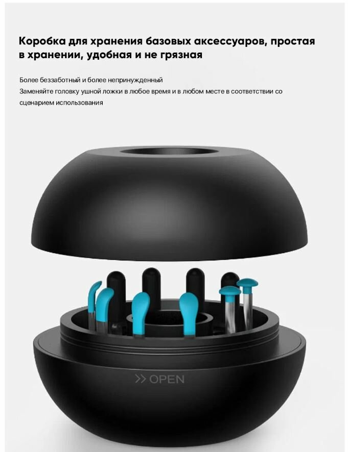 Xiaomi Bebird M9 Pro – умная ушная палочка, оснащенная встроенным эндоскопом, которая позволит вам удобно и безопасно очистить слуховые каналы от серы. Объектив встроенной камеры обладает диаметром всего 3.5 миллиметра, что позволяет использовать устройство даже для очистки ушей ребенка. В комплект входит большой набор различных насадок для комплексного ухода за ушами и очистки даже самых труднодоступных участков слуховых каналов. Устройство оснащено системой, которая нагревает насадку до температуры 25 °С, что обеспечивает максимальный комфорт пользователя во время чистки ушей. Встроенный аккумулятор обладает емкостью 350 мАч и обеспечивает до 10 часов постоянной работы ушной палочки на одном заряде.