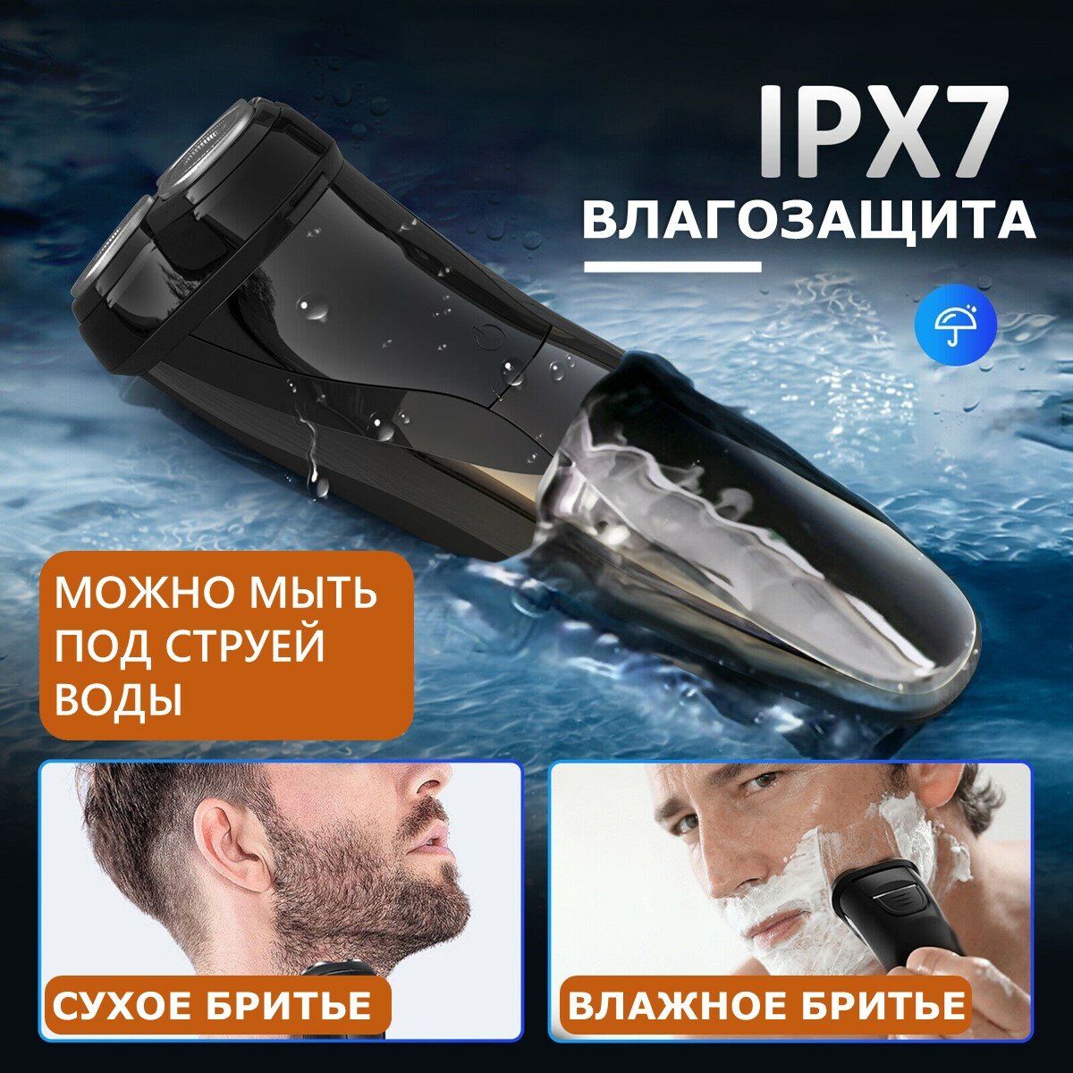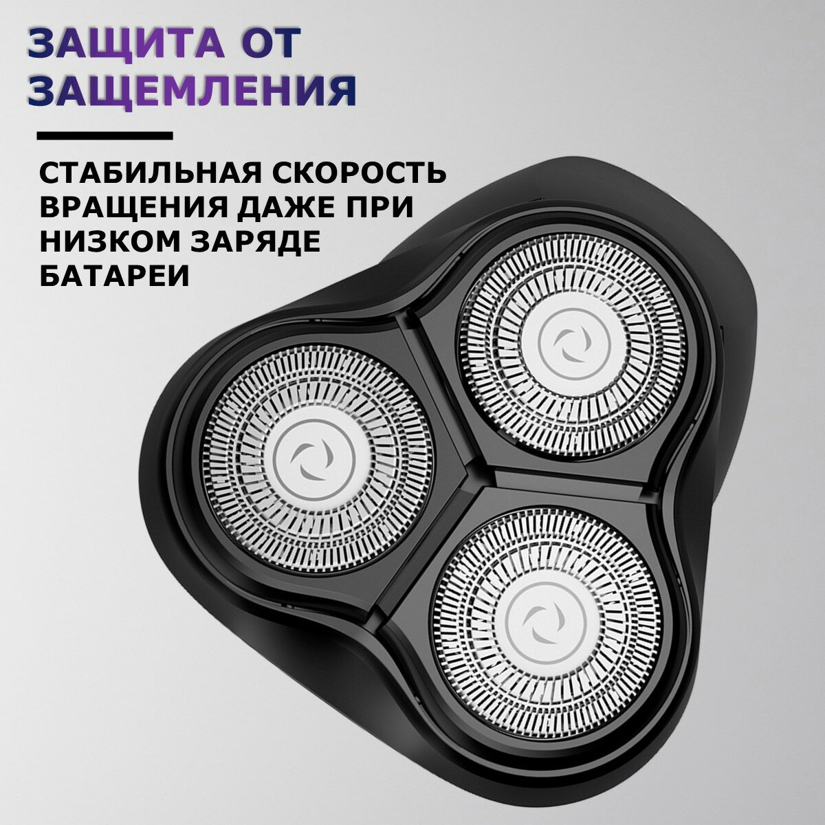 В электробритве большое внимание уделяется удобству и простоте использования, чтобы каждый мужчина мог насладиться чистым и гладким бритьем, производящим самое положительное впечатление на всех окружающих. имеет удобную и продуманную конструкцию, что позволяет легко бриться одной рукой. Корпус электробритвы защищен от влаги по стандарту IPX7, что позволяет использовать модель не только для сухого, но и для влажного бритья. Модуль с бреющими головками можно отсоединить от корпуса и промыть под струей воды. Лезвия изготовлены из качественной японской нержавеющей стали, что гарантирует высокую прочность и долговечность. Информативный LED-дисплей отображает текущий заряд аккумулятора и рабочий режим устройства. Благодаря компактным размерам электробритву можно брать с собой в длительные поездки и использовать без подключения к розетке. Встроенный аккумулятор обеспечит до 150 минут бритья без подзарядки. Двухкольцевая конструкция значительно увеличивает площадь контакта между поверхностью кожи и сеткой ножа бритвы, позволяя быстрее и качественнее срезать даже небольшие волоски. Также в модели предусмотрено дополнительное выдвижное лезвие — для коррекции бакенбардов или бороды.