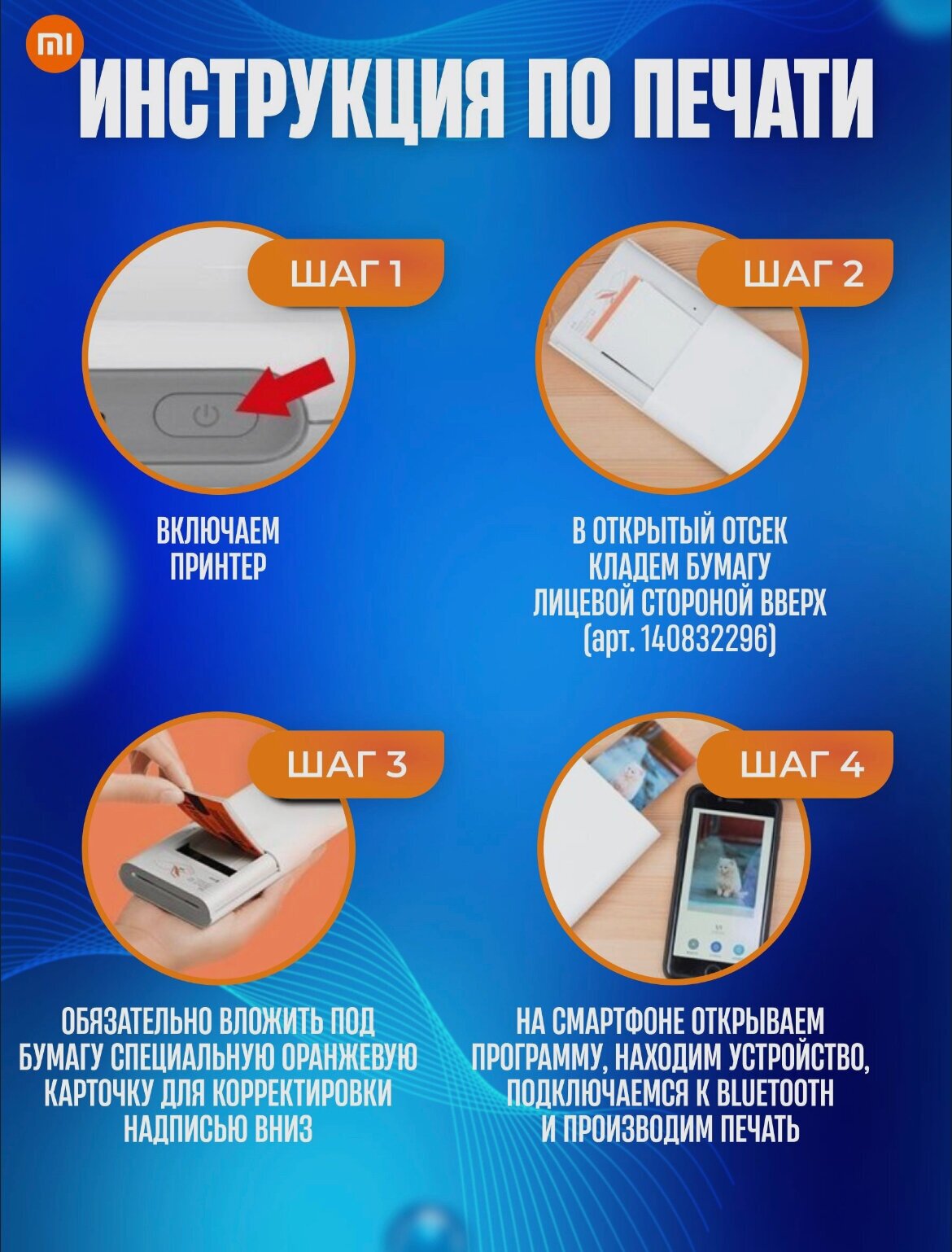 Xiaomi – карманный фотопринтер размером всего лишь с внешний аккумулятор. Корпус изготовлен из огнестойкого материала. Может печатать 3-дюймовые фотографии. Принтер использует технологию ZINK, с помощью которой печать изображения происходит без использования чернил. Вместо чернил используется специальная бумага, а цвета появляются при тепловом воздействии принтера на кристаллы в структуре этой бумаги. Запишите или загрузите любое аудио при печати фотографий, откройте приложение Mijia для сканирования фотографий. Просмотр фотографии будет сопровождаться записанным аудио, и вы можете услышать звуковое сопровождение в любое время и в любом месте. В приложении Mijia есть множество интересных шаблонов, которые легко демонстрируют творческий подход к фотографиям. Принтер имеет маленькие габариты 124х85 мм и легко помещается в карман. Комплектация: фотопринтер, USB-кабель.