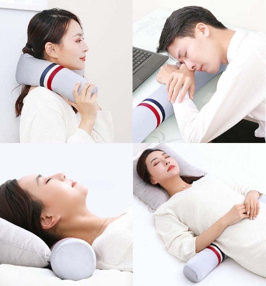 Xiaomi – подушка, которую можно трансформировать в любую форму: под шею, спину или любую другую форму. Съемная наволочка, которая закрывается на молнию, сделана из шелка. Наполнитель сделан из хлопка. Внутри подушки расположены графеновые нагревательные элементы, которые питаются с помощью USB кабеля и портативного аккумулятора (не входит в комплект). В режиме нагрева подушку можно использовать в качестве грелки.