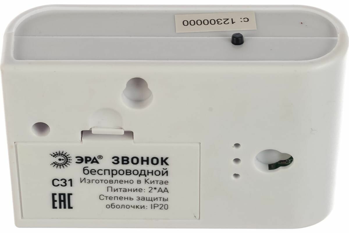 Все для офиса Эра Б0018494 Беспроводной звонок «Эра» предназначен для использования в качестве дверного звонка или устройства внутреннего вызова. Может крепиться на двусторонний скотч или шурупы. Универсальный дизайн, компактность и простота установки позволяют использовать звонок в квартире, загородном доме и в офисе.