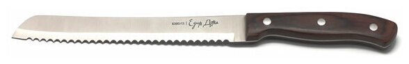 Нож для хлеба – с длинным зубчатым лезвием, что позволяет легко резать, а не мять хлеб и другие продукты с твердой коркой и мягкой серединой. Линейка ножей из качественной прокатной стали с ручками Pakawood для домашнего и профессионального использования. Инновационные материалы, применяемые в производстве и современное оборудование, позволяют получить ножи высокого качества, при этом сохранив весьма демократичную цену.Цвет: темное дерево.Материал: сталь 18/10.Длина лезвия: 20 см.Назначение: хлебный.