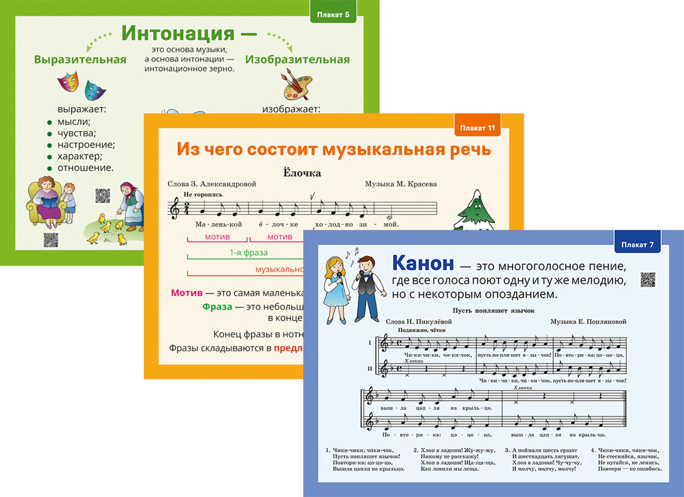 На плакатах размещены QR-коды, с помощью которых можно прослушать фрагменты музыкальных произведений. Электронную версию издания для демонстрации на проекторе в классе можно скачать в приложении Aversev Media.