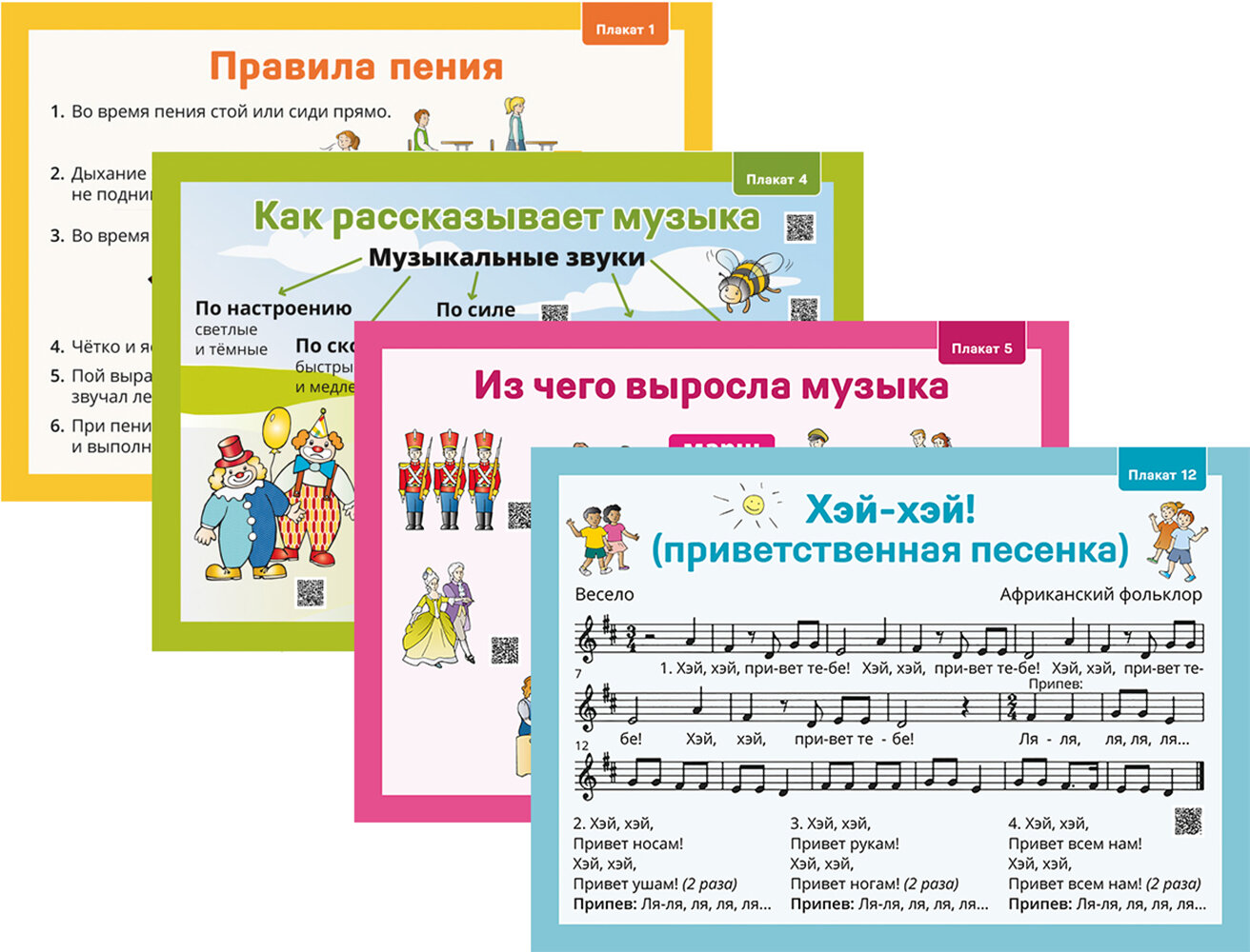 На плакатах размещены QR-коды, с помощью которых можно прослушать фрагменты музыкальных произведений, звуки природы, а также звуки, издаваемые музыкальными инструментами.