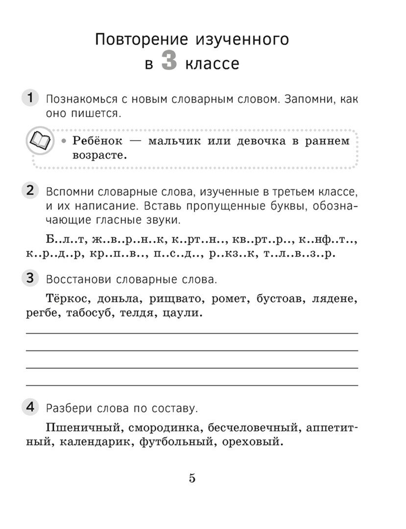 В пособии представлена система практических заданий по темам, которые изучаются в 4 классе. Интересные разноуровневые упражнения направлены на развитие речи, формирование орфографических умений и навыков, расширение словарного запаса учащихся.