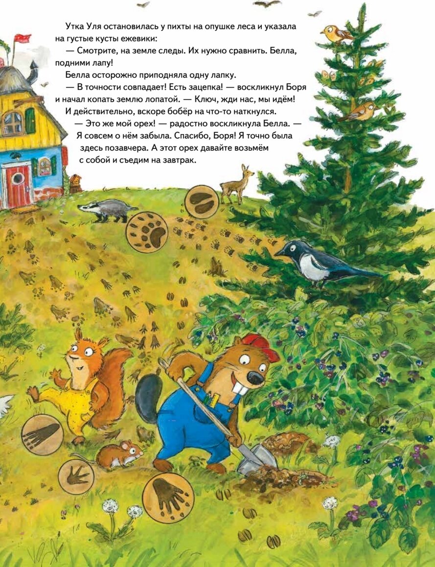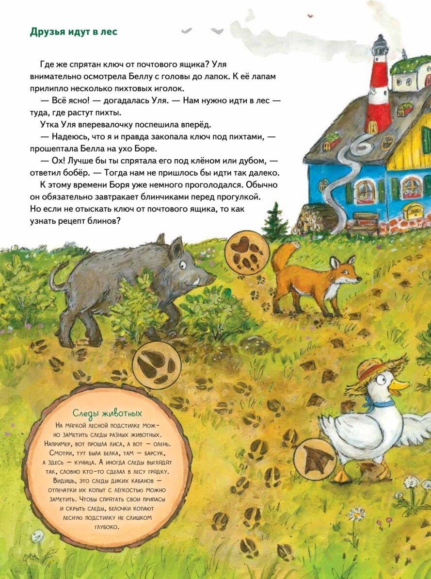С этой миссией любопытно справилось издательство «Питер», выпустив вторую книгу –подготовишку про Бобра Борю-следопыта Инги Мари Рамке с иллюстрациями Кристин Куглер. Я уже читала дочке первую - «Бобер Боря-следопыт! Кто прячется в лесу?». Это была сказочная история про приключения лесных животных-друзей, где параллельно давалась полезная информация о лесе и его обитателях.