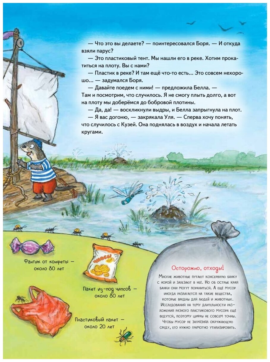 И вот второе издание с теми же героями уже про мусор - «Бобер Боря-следопыт! Спасаем планету». Автор и художник те же, иллюстрации такие же яркие и забавные, как и в первой книге, а текст одновременно сказочный и полезный.