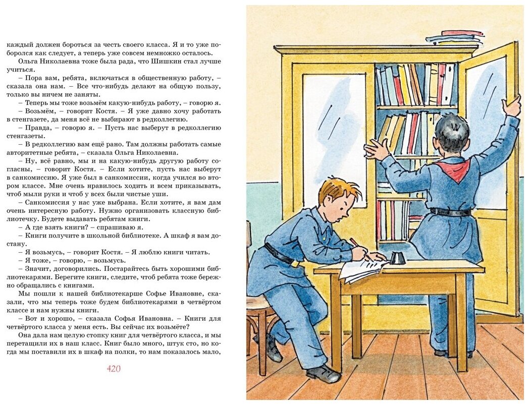 Думаю ни одна детская библиотека не обойдётся без книг Николая Носова. Повести и рассказы Носова увлекательные, добрые, интересные и смешные. Книгу приобретала детям на вырост, в пару книге рассказов из этой же серии. Обе книги хорошего качества, серийного оформления, с яркими и красивыми обложками и корешками, иллюстраций много и полностраничных в том числе, они не яркие, но очень красивые и красочные, белая достаточно плотная бумага, немного мелковат шрифт, но объемы произведений и количество иллюстраций не позволяют сделать его больше, иначе книга была бы слишком толстой. Рекомендую к покупке.