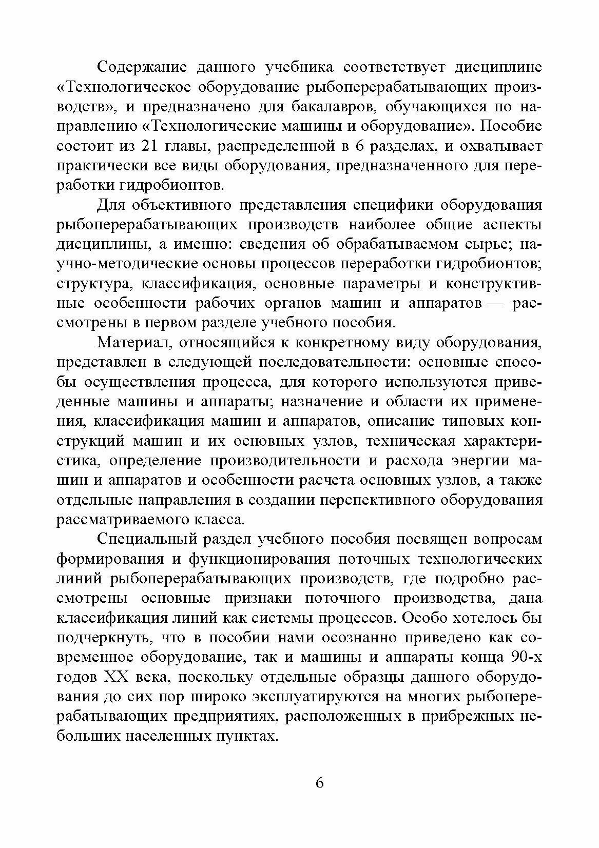 В учебнике изложены сведения об обрабатываемом сырье, научно-методические основы процессов переработки водных биологических ресурсов (гидробионты), структура, классификация, основные параметры и конструктивные особенности рабочих органов машин и аппаратов. Описаны основные способы осуществления процессов, для которых применяются машины и аппараты; назначение и области их применения, классификация, типовые конструкции оборудования и их основных узлов, приведены технические характеристики и расчеты производительности и расхода энергии.