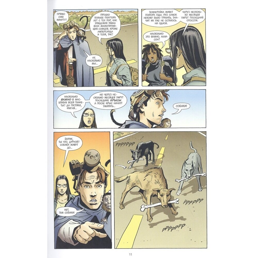 Так начинается удивительное путешествие: два последних носителя Y-хромосомы пытаются раскрыть тайну эпидемии, уничтожившей других мужчин, и сохранить будущее человечества. Но как одному человеку спасти целый вид, если его сердце принадлежит единственной женщине — а та на другой стороне земного шара?