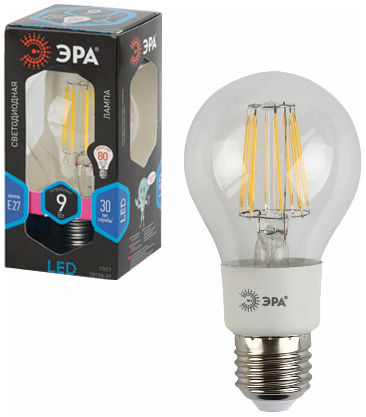 - Лампа светодиодная "ЭРА", F-LED А60-9w-840-E27