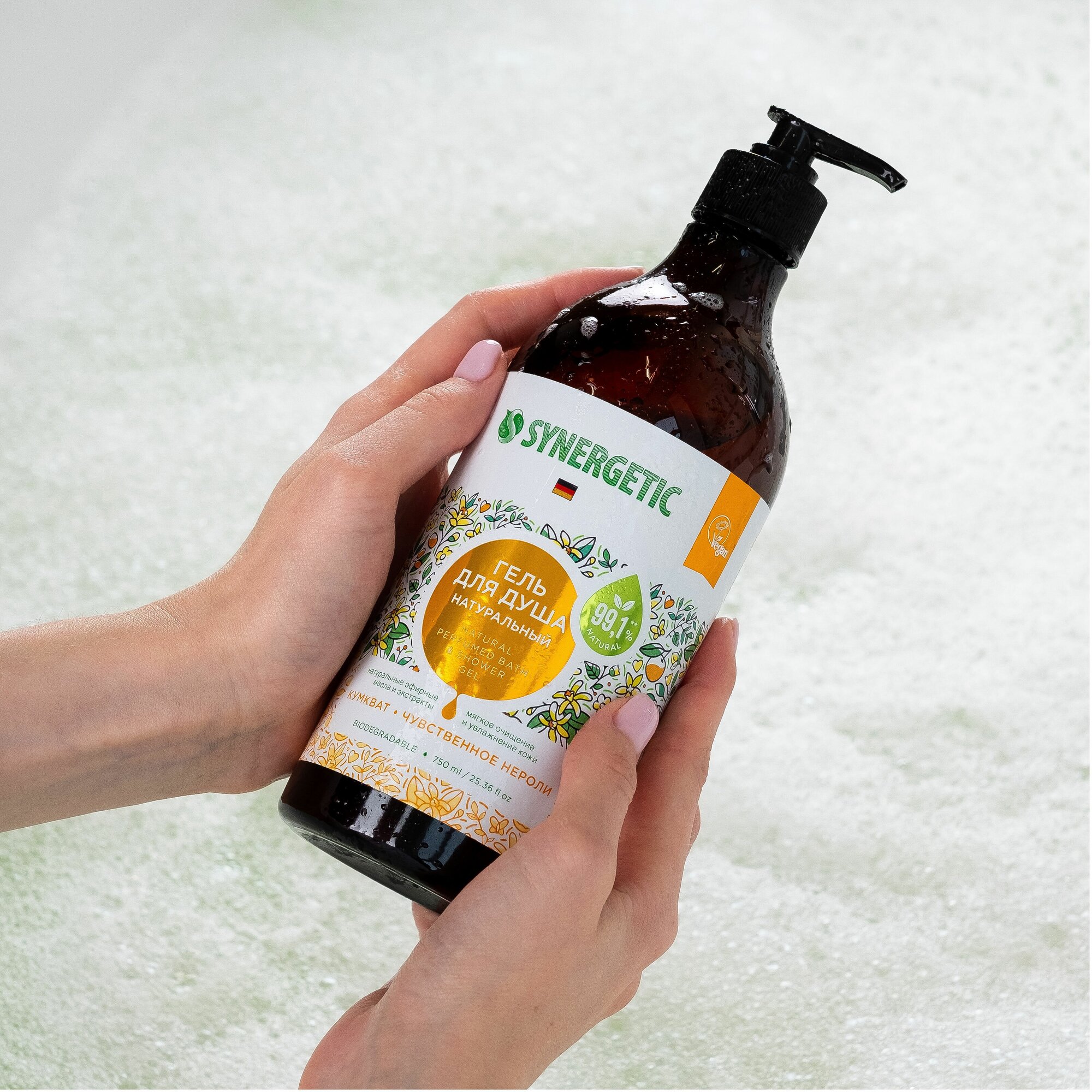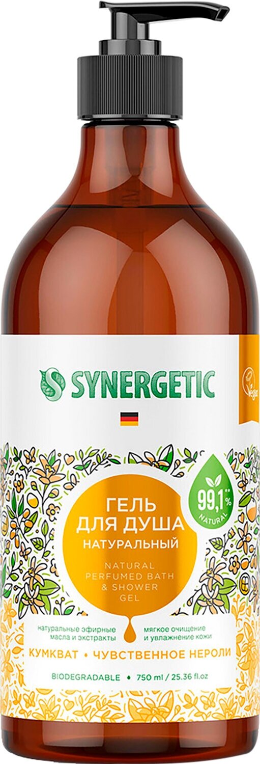 Натуральный биоразлагаемый гель для душа SYNERGETIC «Кумкват и чувственное нероли» — это деликатное средство для очищения кожи, на 99,1% состоящее из натуральных компонентов. Гипоаллергенный аромат геля SYNERGETIC «Кумкват и чувственное нероли» разработан в швейцарском доме Givaudan с маслом пачули и нотами тропических растений.