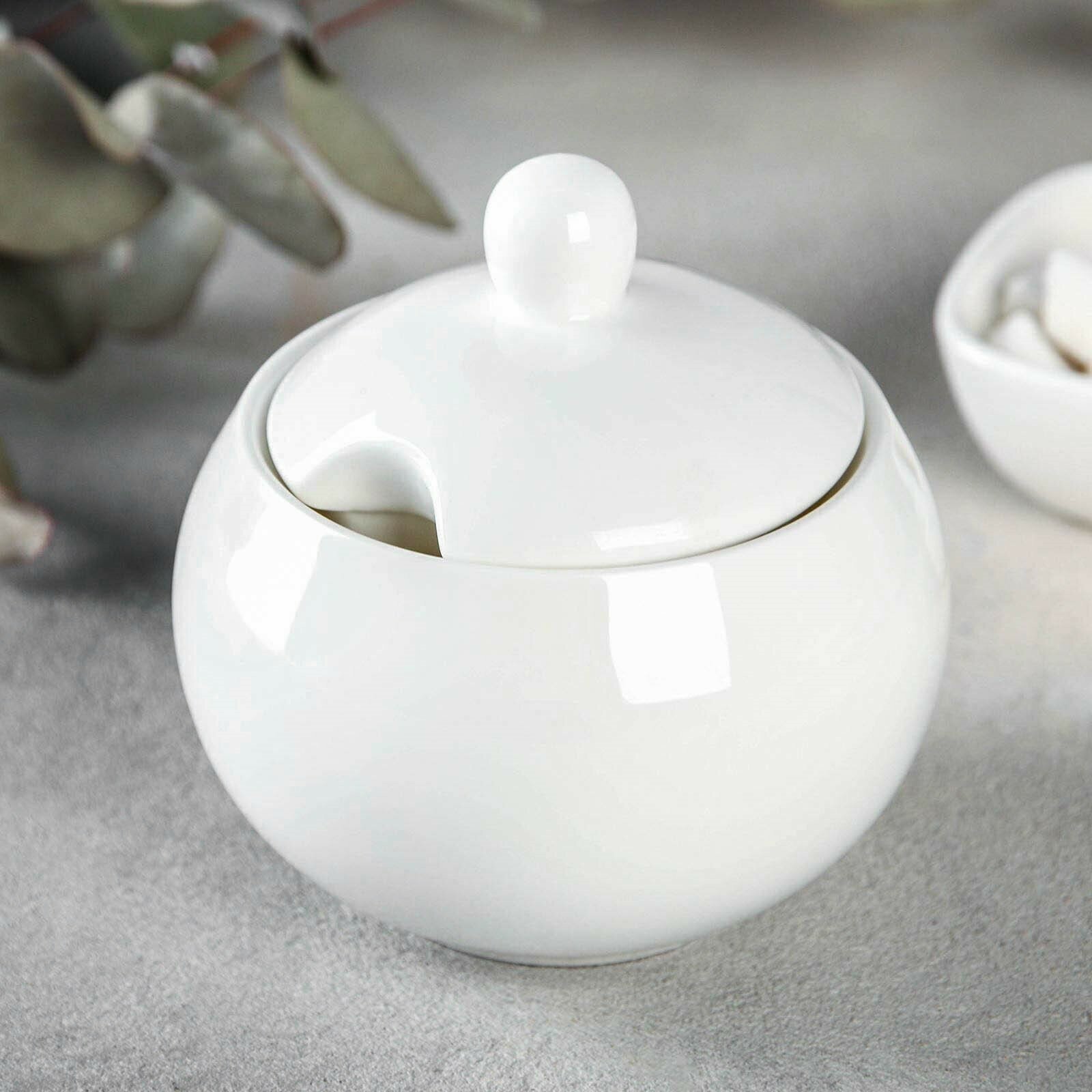 Willmax Сахарница 325 мл WL-995001 / 1C Круглая сахарница с крышкой позволит сохранить и защитить сахар от влаги. Подарочная упаковка. Высококачественный фарфор покрытый двойным слоем глазировки. Белый с оттенком слоновой кости цвет, выдерживает температуру 300°C, низкое водопоглощение менее 0,1%, высокая ударопрочность. Подходит для использования в микроволновой печи. Можно мыть в посудомоечной машине.