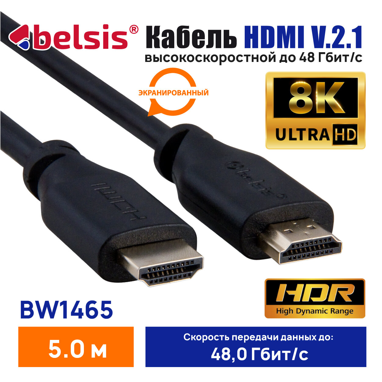 Кабель Belsis 8K HDMI 2.1 благодаря уникальной динамической HDR-технологии 8K HDMI и 12-битной технологии обработки цвета и пропускной способности 48 Гбит/с, может обеспечить кинематографический опыт сверхвысокой четкости и 3D-визуальные эффекты с идеальной глубиной, яркостью, детализацией, контрастностью и более широкой цветовой гаммой. Поддерживает HDCP2.2 при использовании источника видео HDCP2.2.