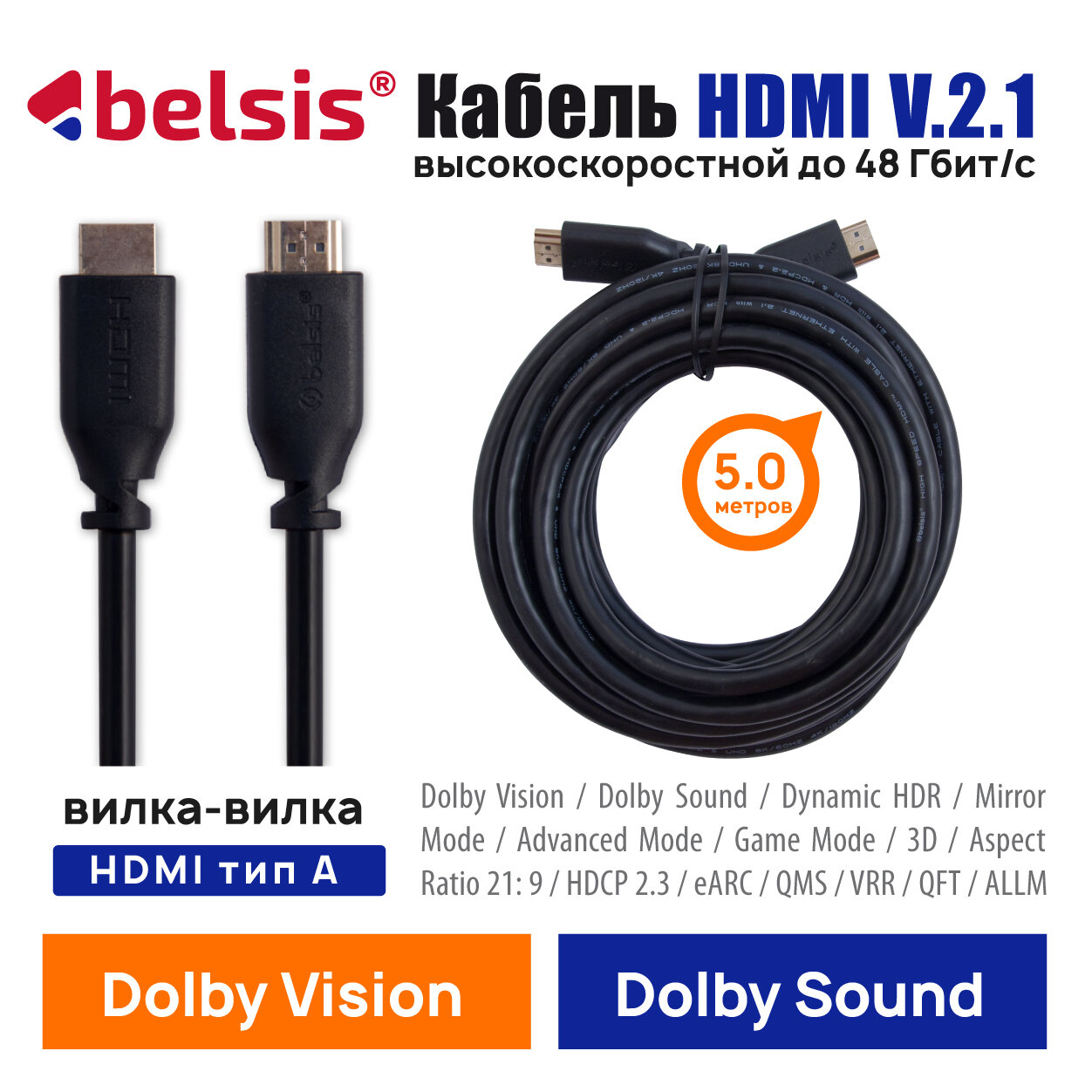 HDMI Кабель Belsis предлагает гораздо более высокую пропускную способность по сравнению с предыдущими версиями HDMI. Подключает проигрыватели Blu-ray, Fire TV, Apple TV, PS5, PS4, PS3, XBox One, Xbox 360, компьютеры и другие устройства с поддержкой HDMI 2.1 и предыдущих версий к телевизорам, дисплеям, A/V-приемникам и многому другому. По сравнению с HDMI 2.0 и 1.4, его скорость передачи контента в три раза больше, чем у Ultra HD 4K, и с этого момента при просмотре видео больше не будет застрявших или пропущенных кадров. Поддержка eARC позволяет получить более продвинутые возможности управления аудиосигналом. С Dolby Atmos и Dolby Vision вы можете получить захватывающий опыт. Вы можете наслаждаться кристально чистым качеством звука телевизора в формате UHD, в то время как глубокие цвета и изображения с высоким разрешением обеспечивают вам наилучшие визуальные впечатления сверхвысокой четкости.