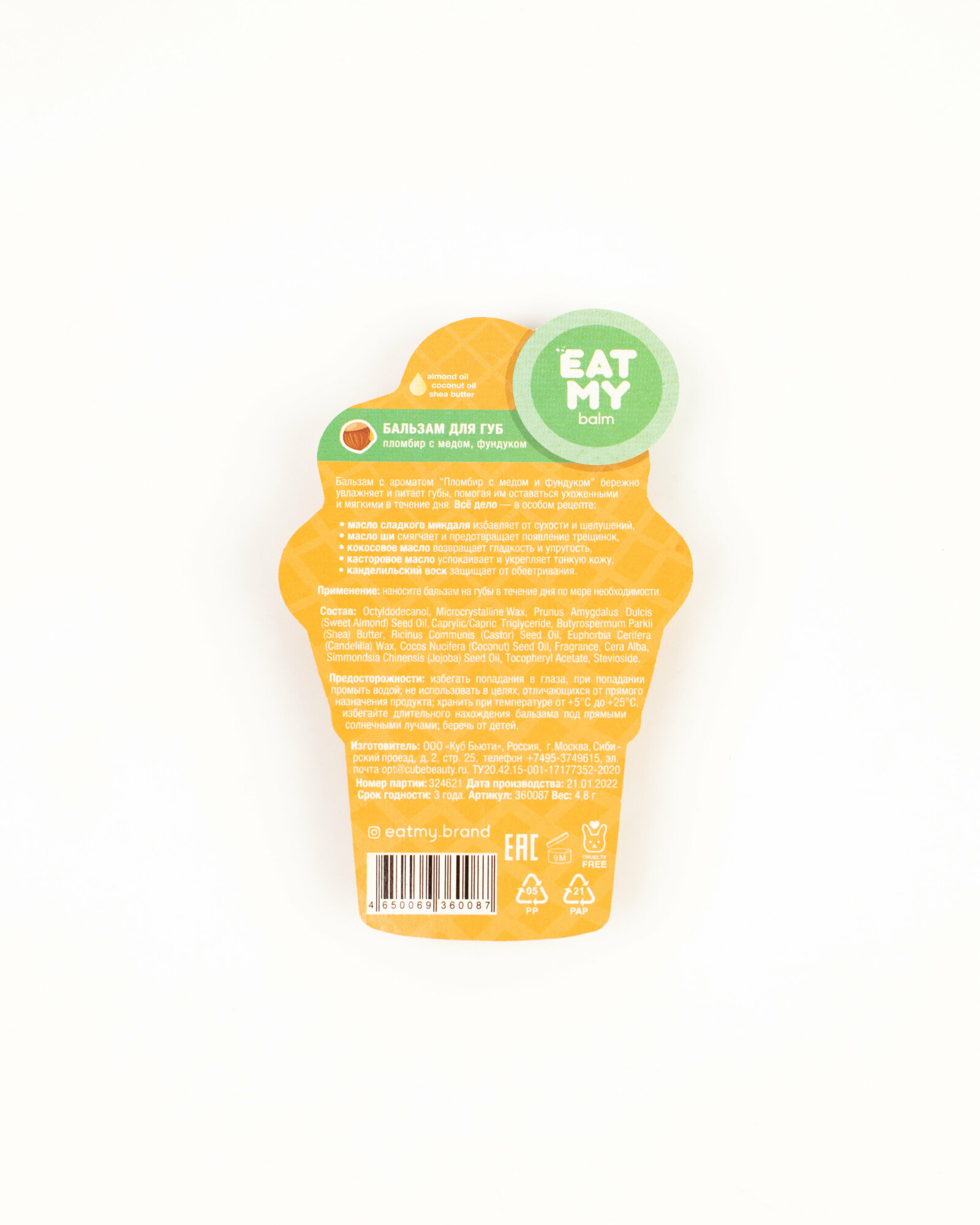 | Полное наименование | Бальзам для губ EAT MY "Пломбир с медом и фундуком" |