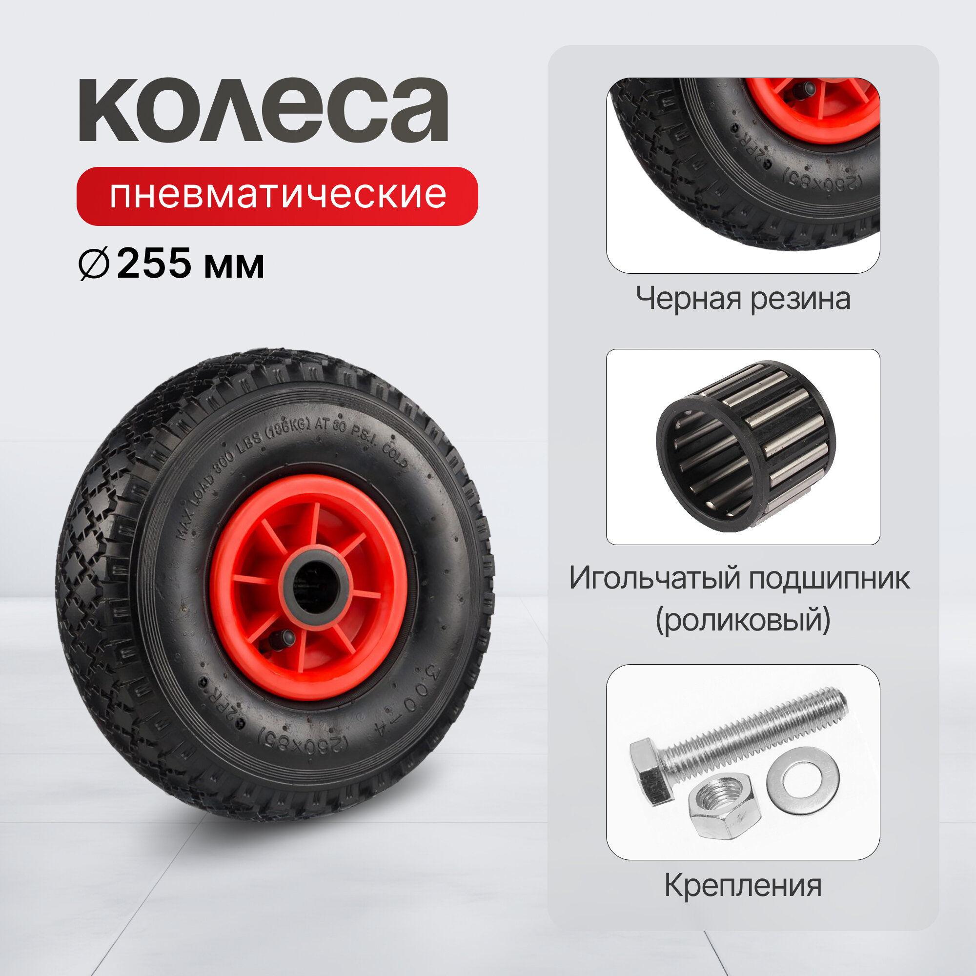 Колеса из вспененного полиуретана устанавливаются на прочную 20 миллиметровую ось. Диаметр колес 255 мм. Устойчивы к проколам и к порезам. Аналог пневмоколес с меньшим удельным весом. Бесшумный комфортный ход.