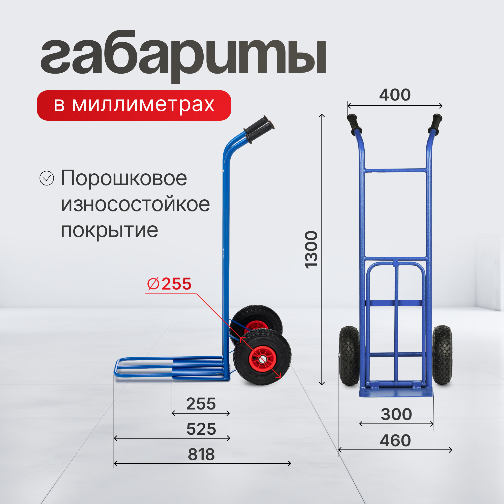 Металлический цельносварной каркас — повышает гарантийные качества и срок службы тележки. Порошковое покрытие "шагрень" обеспечивает устойчивость к коррозии. Прорезиненные ручки.