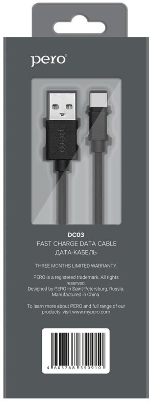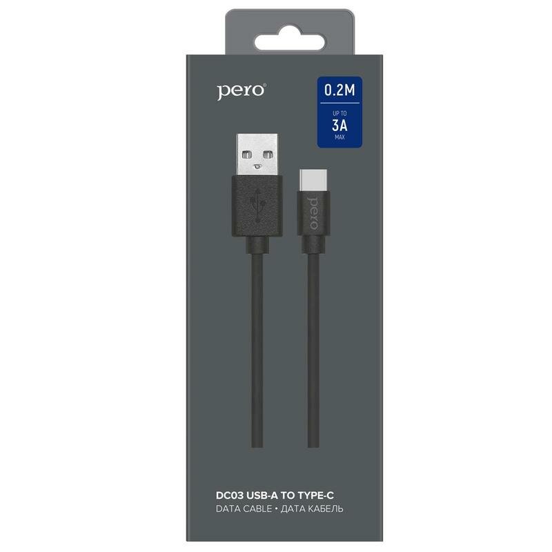 Дата-кабель PERO DC-03 Type-C 3А 0.2м черный (Fast Charge)