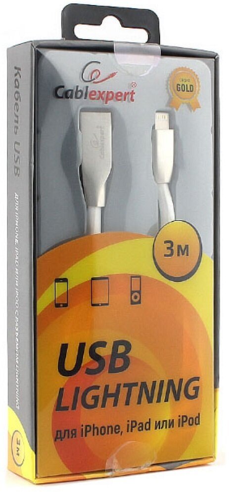Кабель Gembird Cablexpert Gold Series USB AM/Lightning 3m White CC-G-APUSB01W-3M