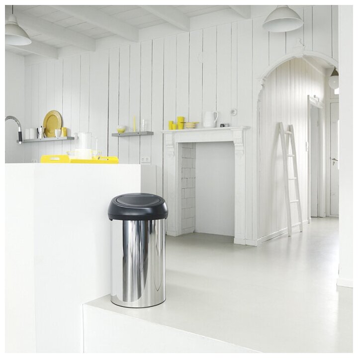 Вместительный Touch Bin с широким загрузочным отверстием на 60 литров станет Вам незаменимым помощником по сбору больших объемов мусора. • Бесшумное открывание/закрывание крышки легким касанием – система «soft touch». • Большая вместимость – до 60 литров отходов. • Аккуратный сбор мусора без просыпок – широкое загрузочное отверстие. • Предотвращает распространение запахов и скрывает содержимое бака – демпфированная крышка. • Предохранение пола от повреждений – пластиковый защитный обод. • Легкое перемещение с места на место – прочная ручка для переноски. • Бак изготовлен из коррозионно-стойких материалов – долговечность и удобство в очистке. • Всегда опрятный вид – идеально подходящие по размеру мешки для мусора со стягивающей лентой (размер H). • 10-летняя гарантия Brabantia.