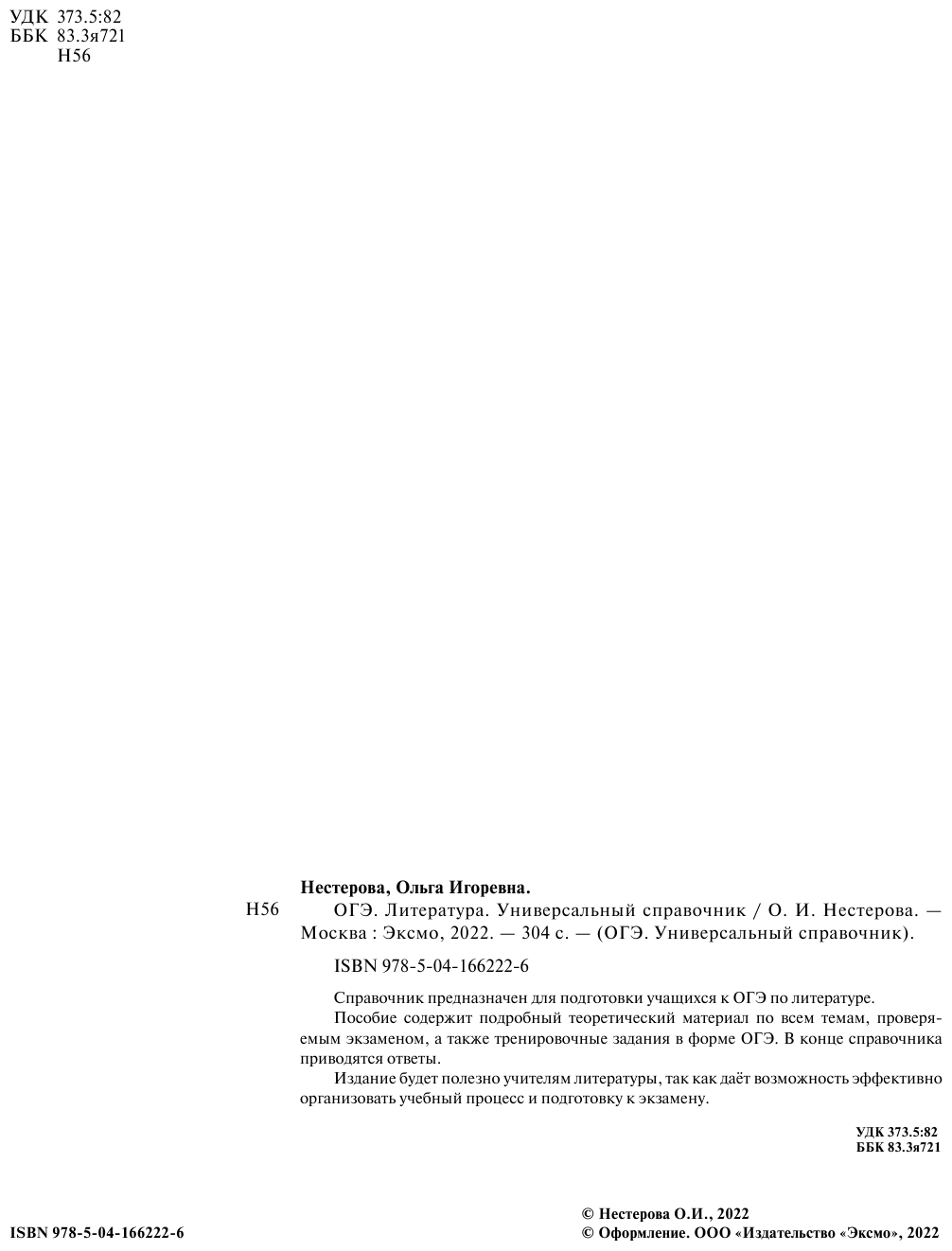 ОГЭ. Литература. Универсальный справочник (Нестерова Ольга Игоревна); Эксмо-Пресс, 2022