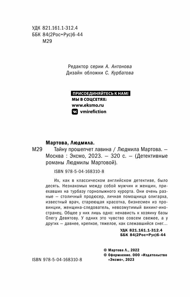 Книга: Тайну прошепчет лавина (Людмила Мартова); Эксмо, Редакция 1, 2023