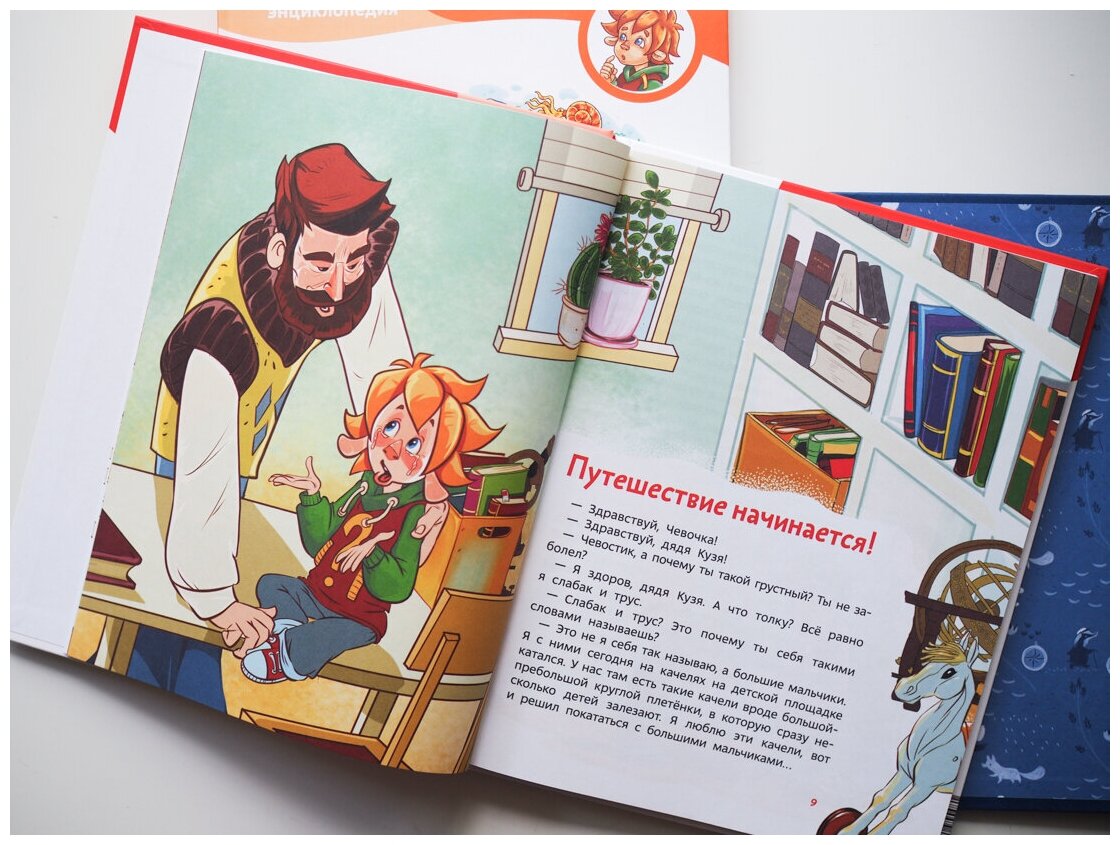 Чевостик вместе с дядей Кузей совершает удивительные путешествия в мир наук: физики, химии, астрономии, анатомии, геологии и других. Он рассказывает детям о великих географических открытиях, покорении космоса и волшебных химических превращениях.