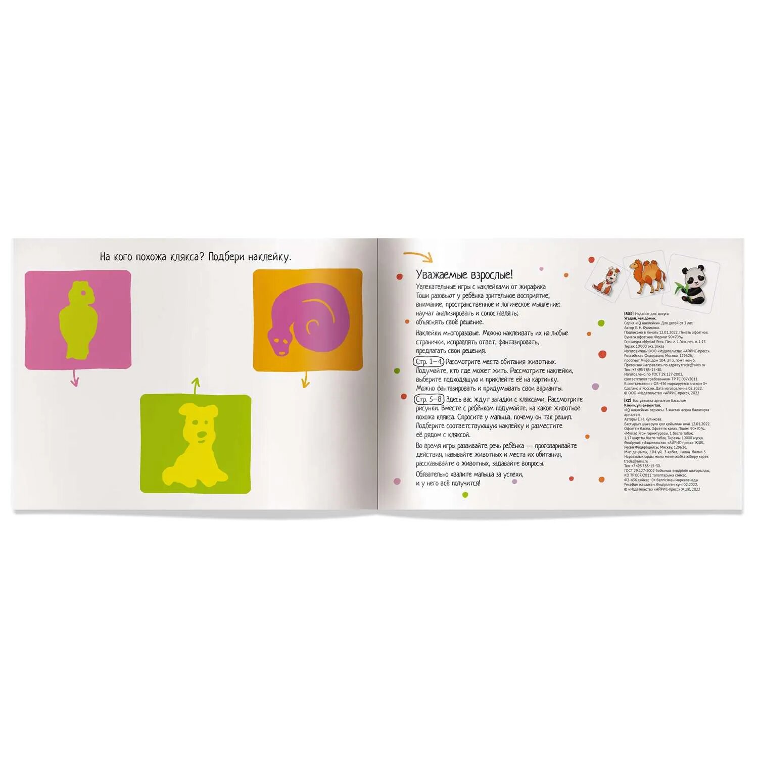 | Наименование модели | Книжка IQ задачки с многоразовыми наклейками. Угадай, чей домик |